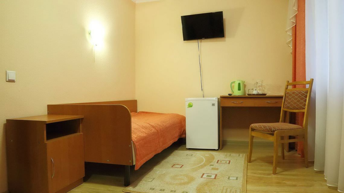 1 осн. место. 1 доп. место. Мебель: вешалка, зеркало, кровать односпальная, прикроватная тумбочка, стол, стул, шкаф. Оборудование: телевизор, холодильник, электрочайник. Санузел: с душевой кабиной, туалетные принадлежности. Сервис: Wi-Fi бесплатно, смена полотенец, смена постельного белья, уборка номера.