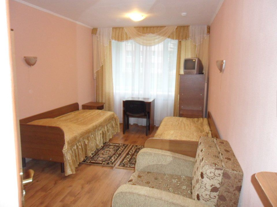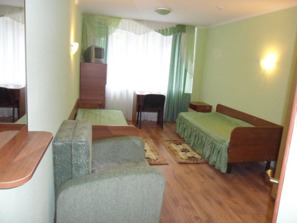 2 осн. места. 1 доп. место. Мебель: вешалка, зеркало, кровати односпальные, прикроватные тумбочки, стол, стул, шкаф. Оборудование: телевизор, холодильник. Санузел: с душевой кабиной, туалетные принадлежности. Сервис: Wi-Fi бесплатно, смена полотенец, смена постельного белья, уборка номера.